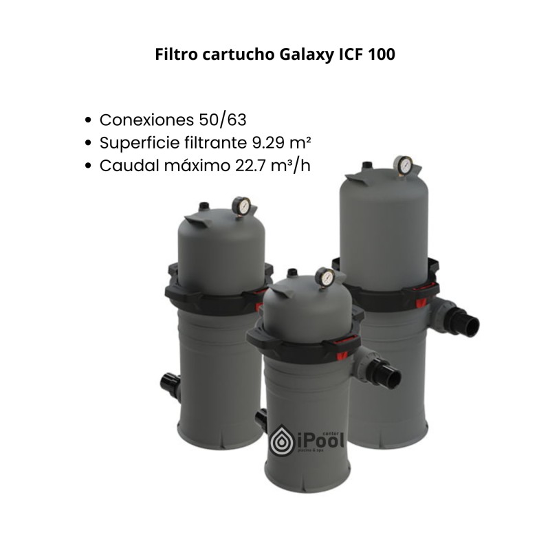 Filtro cartucho Galaxy ICF 100 Conexiones 50/63 Superficie filtrante 9.29 m² Caudal máximo 22.7 m³/h